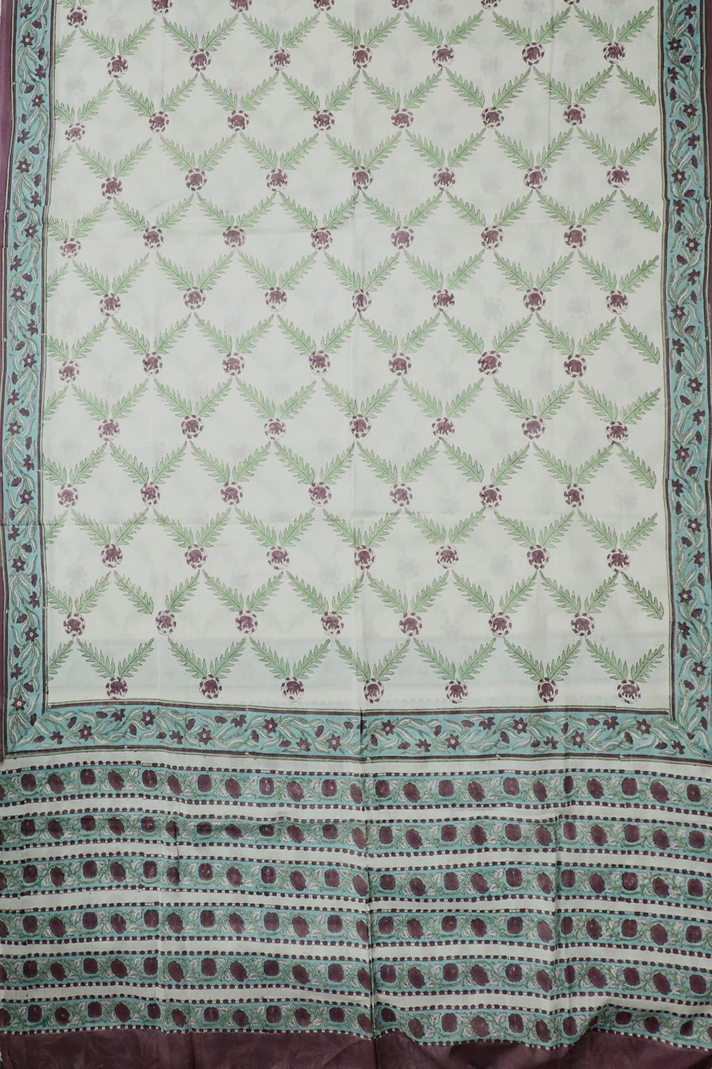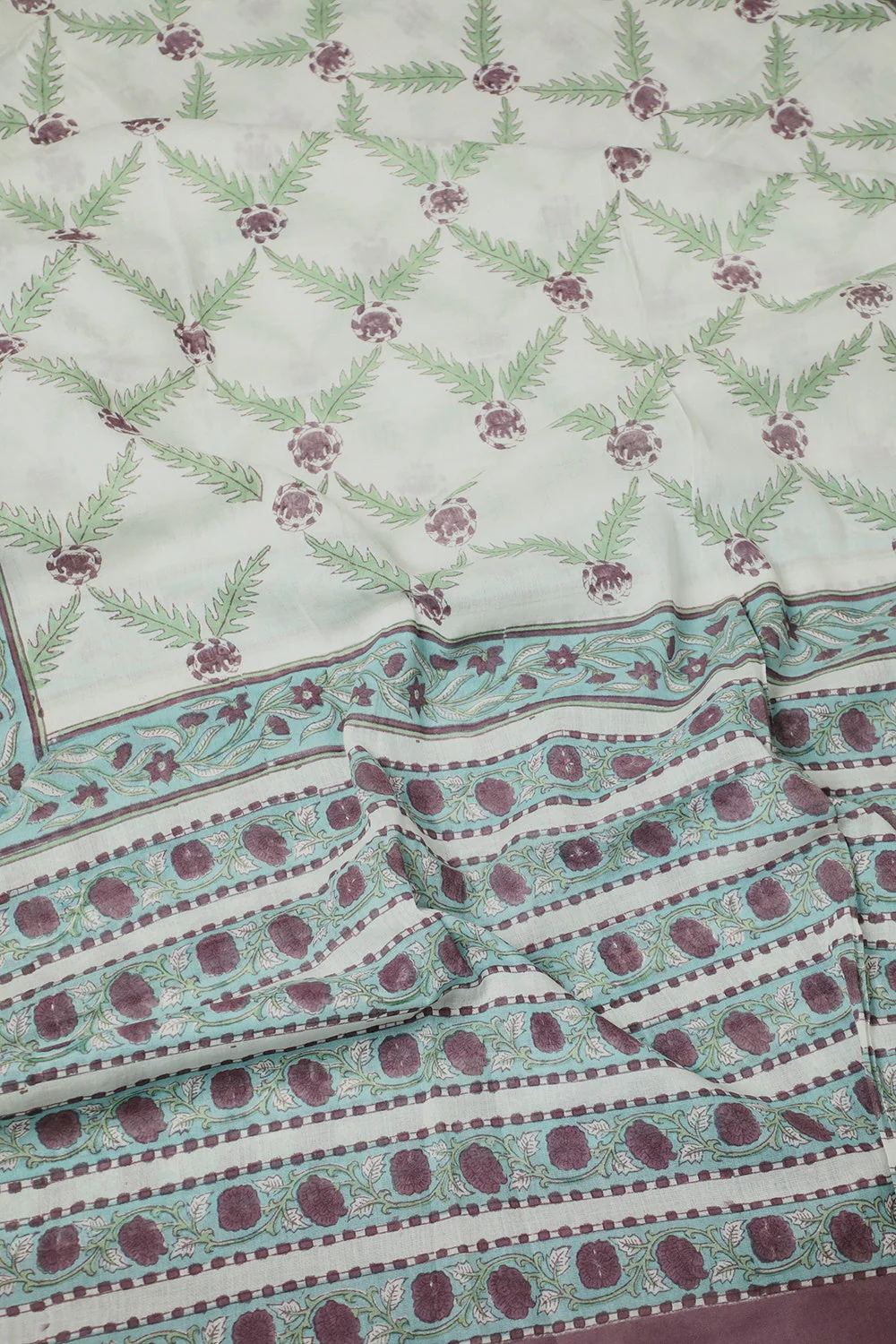 Floral Pattern on Cream Block Printed Mul Cotton Dupatta