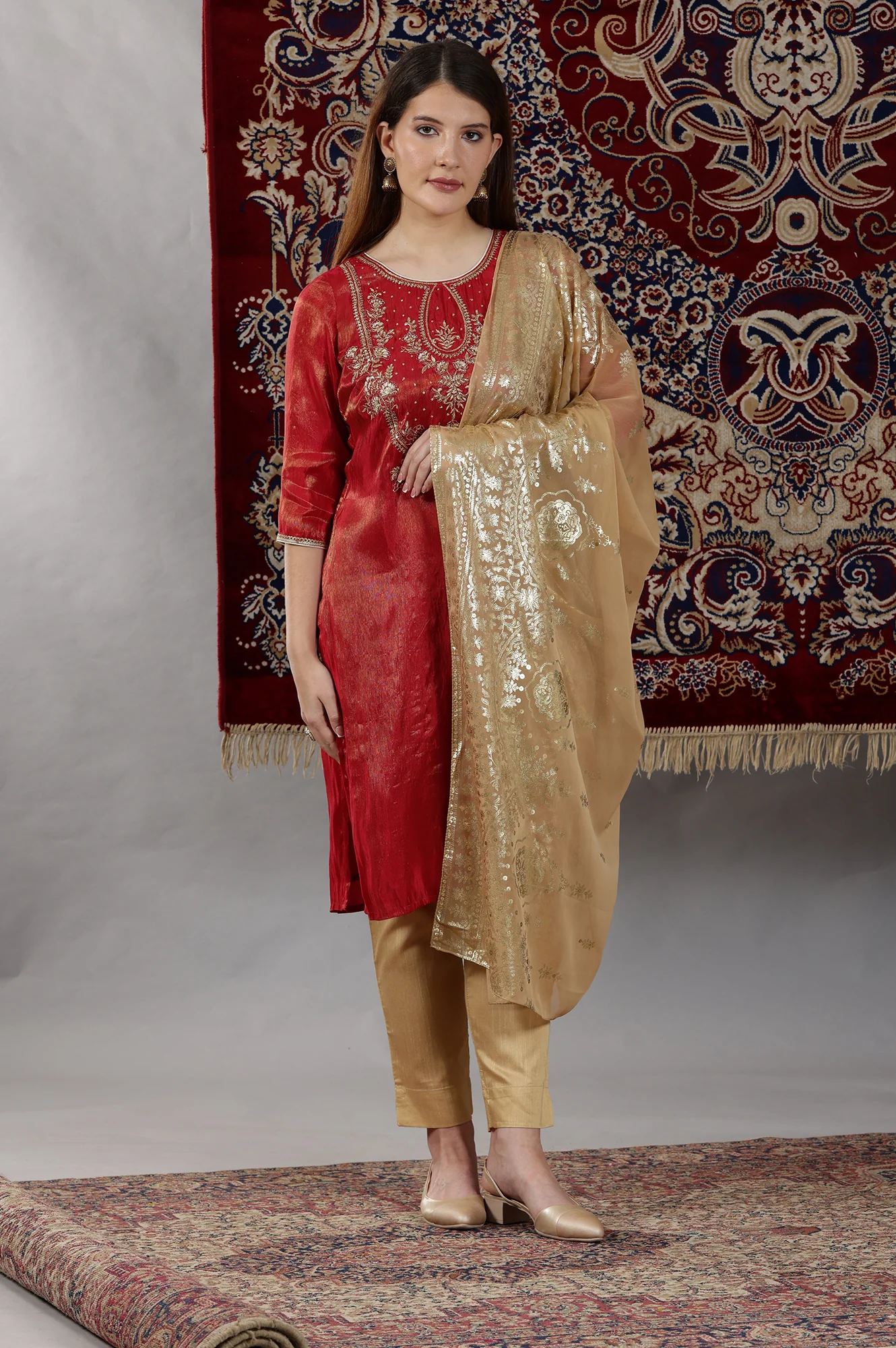 DESCRIPTION Fabric Detail: Poly Kota Doria Fabric: Polyester Width: 44 to 45 inches Length: 2.5 meters Ethnicity: Indian Ethnic Care: Hand Wash