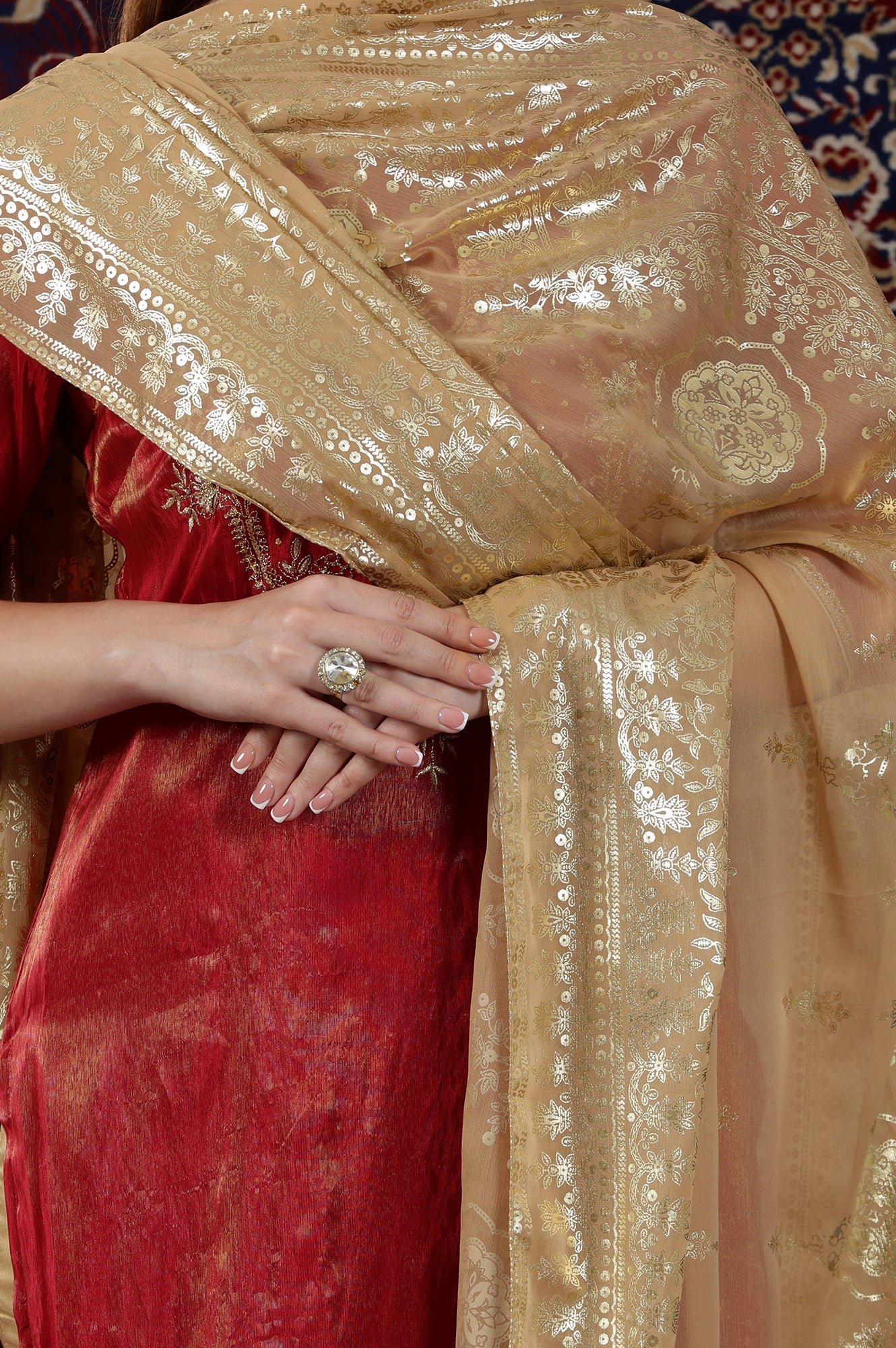 Gold Floral Printed Chiffon Dupatta