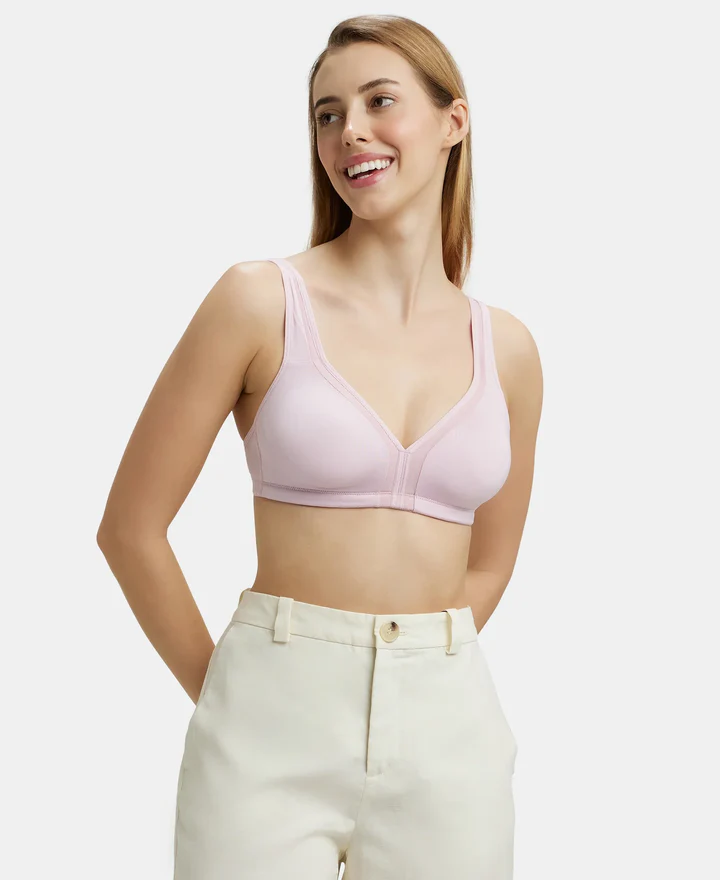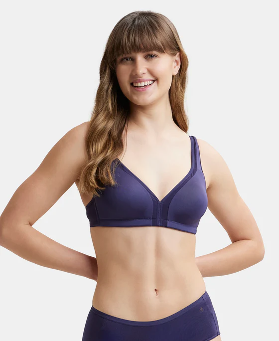 Product Description: Super Combed Cotton Elastane Stretch Fabric Fabric Composition: Nylon and Elastane Full Coverage Bra Wire-free and Non-Padded Broader Cushioned Fabric Strap at Front for Added Comfort Soft and Flexible Reinforced Side Support Provides Better Hold and Smoothening Soft Inner Layer for Better Support and Shape Label Free for All Day Comfort Based on…