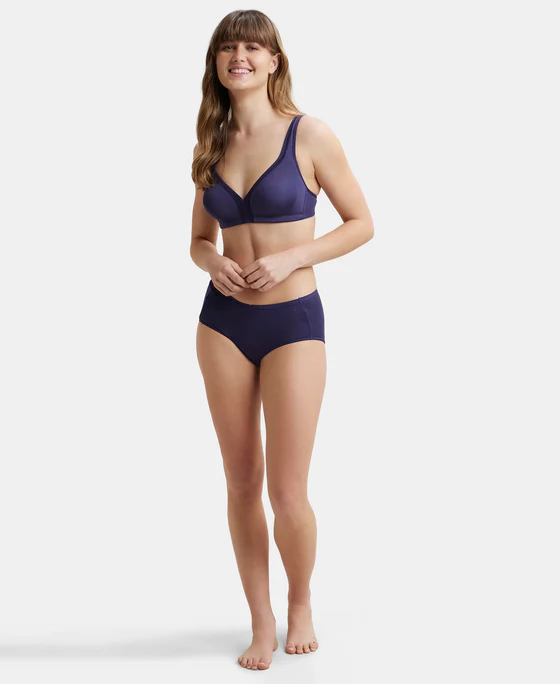 Non Padded Soft Touch Microfiber Elastane Stretch Full Coverage Everyday Bra with Stylized Mesh Panel