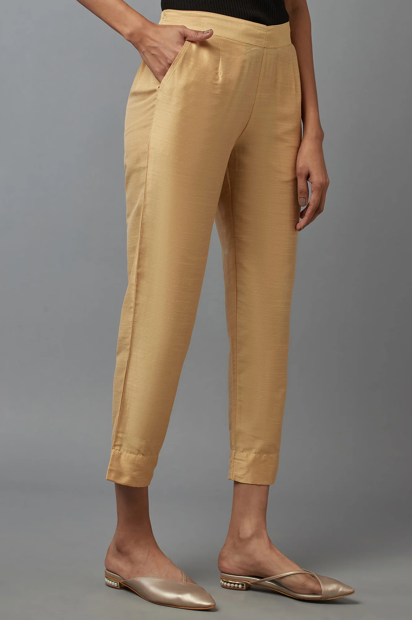 Regular Fit Solid Straight Fit Woven Trousers With Elasticated Waistband
