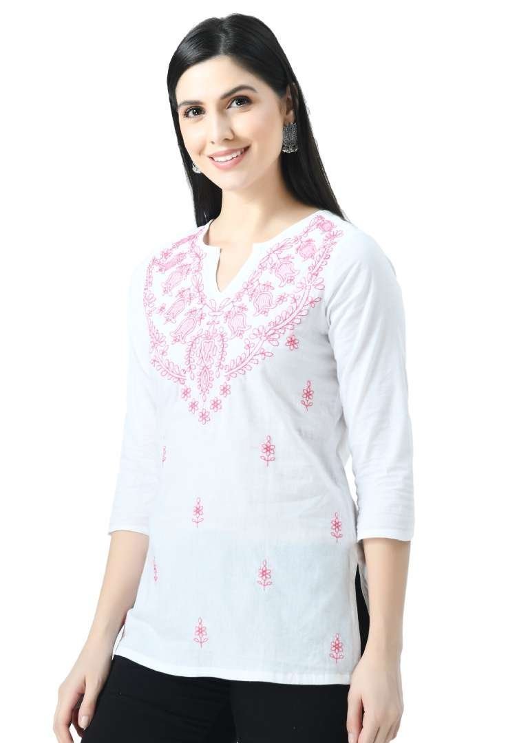Look ethereal in this Lucknowi Chikankari Kurti, freshly crafted in the lightness and comfy feel of cotton.