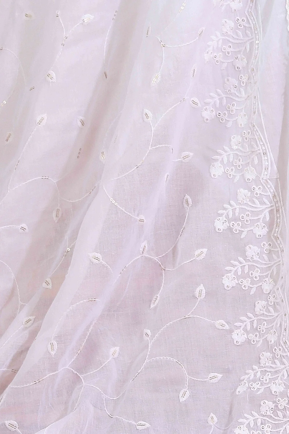 White Cotton Embroidered Dupatta