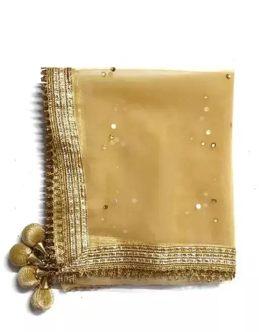Dupatta length: 2.25 m; width: 0.9 m Tasseled hems Zari borders Package contains: 1 dupatta Machine wash Polyester, chanderi